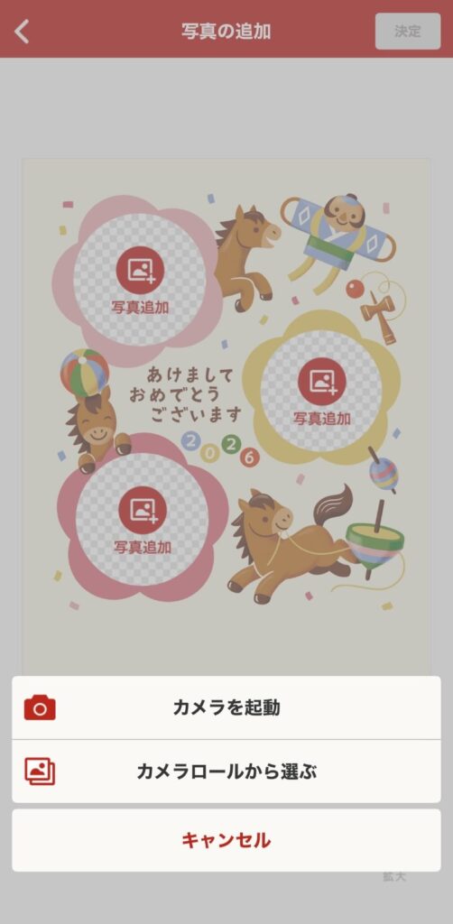 とにかくシンプルに年賀状の裏面を作りたい人にはお勧めできます。特にスマホアプリ版はシンプルで簡単2ステップくらいで年賀状を作れます。