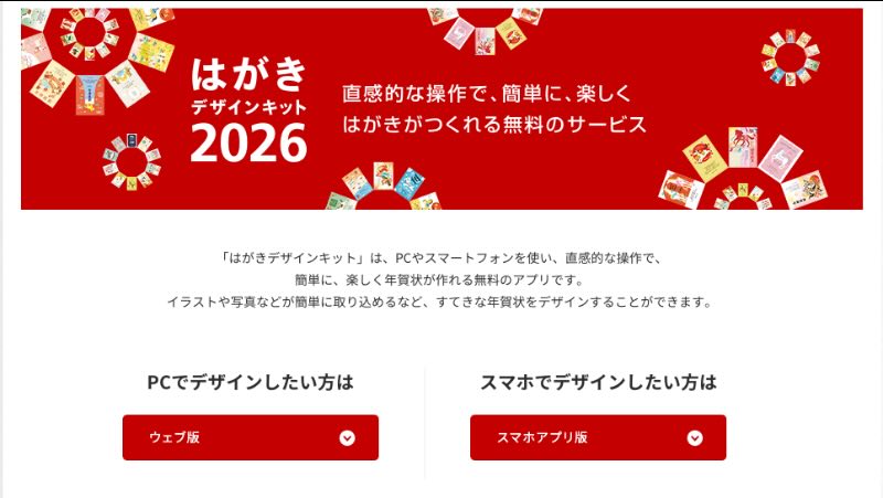 - とにかく無料(タダ)でデザインを作りたい!→「はがきデザインキット」「WEB年賀状キット」
