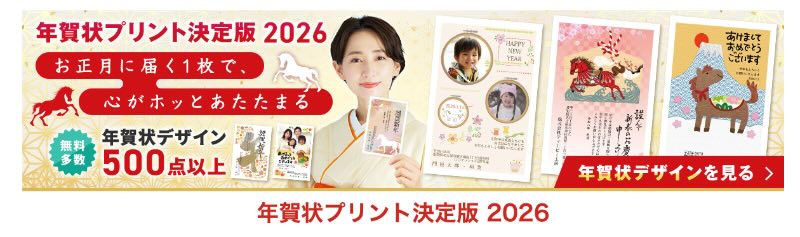 | 印刷方法 | 自分のプリンター、印刷サービス(挨拶状ドットコム年賀状) |