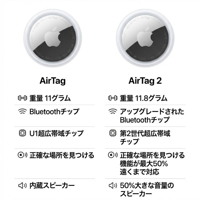 AirTag 2の進化は「見た目」ではなく「体験」に集中しています。主な変更点は次のとおりです。