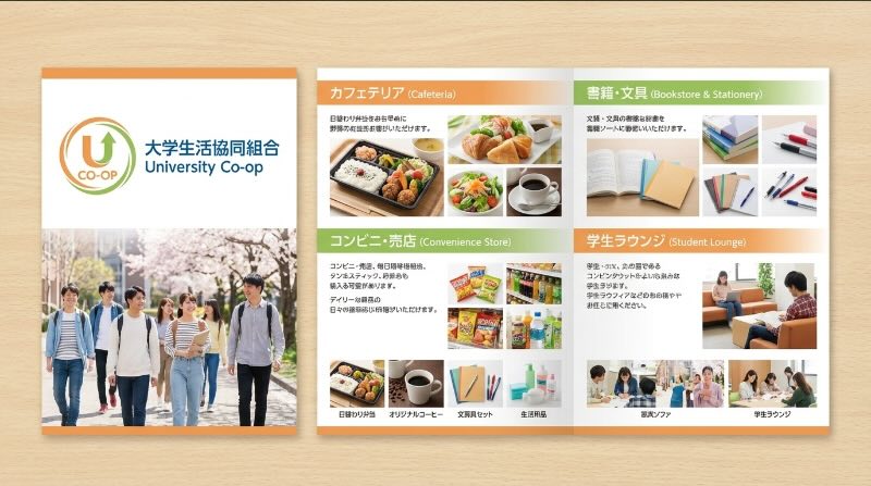 - 大学生協のカタログ・チラシを持つ