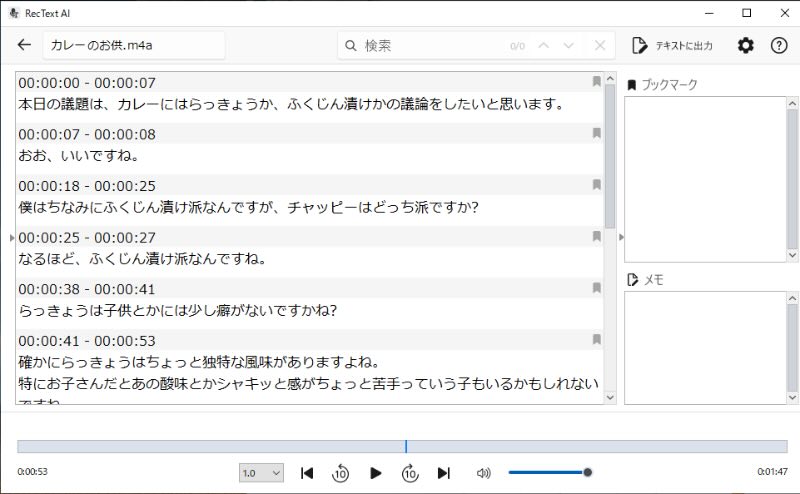 議事録生成や話者識別などの高度な機能はありませんが、**「録音/録画して文字起こしをする」**という主目的には非常に向いています。