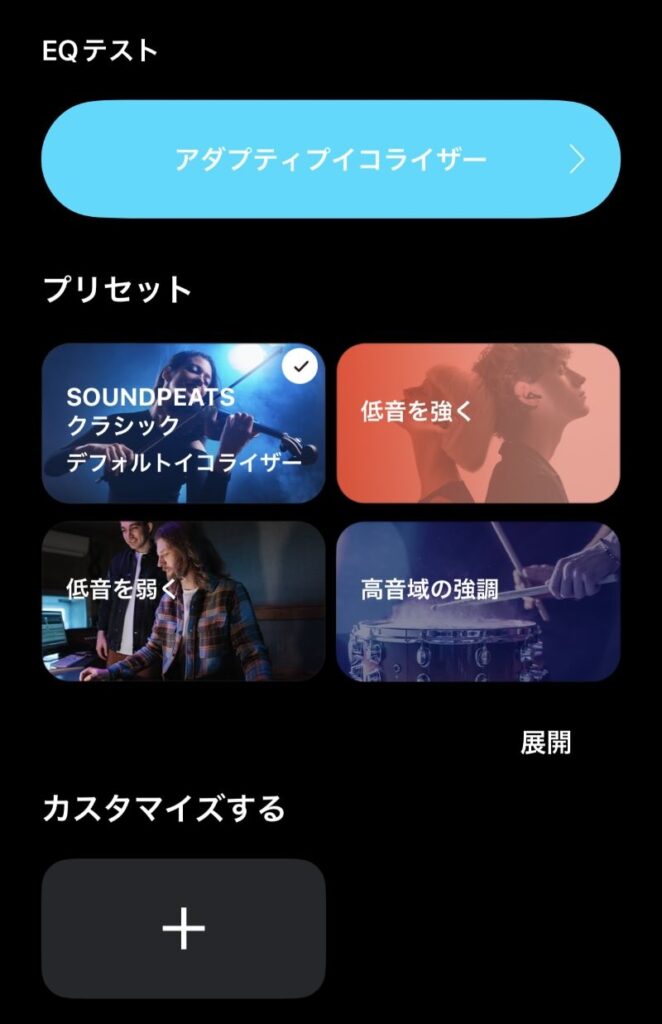 ただ、今まではアダプティブイコライザーをお勧めしていたが、今回は下の4つのプリセットから選んだ方が音がクリアで聞き取りやすいと感じた。
